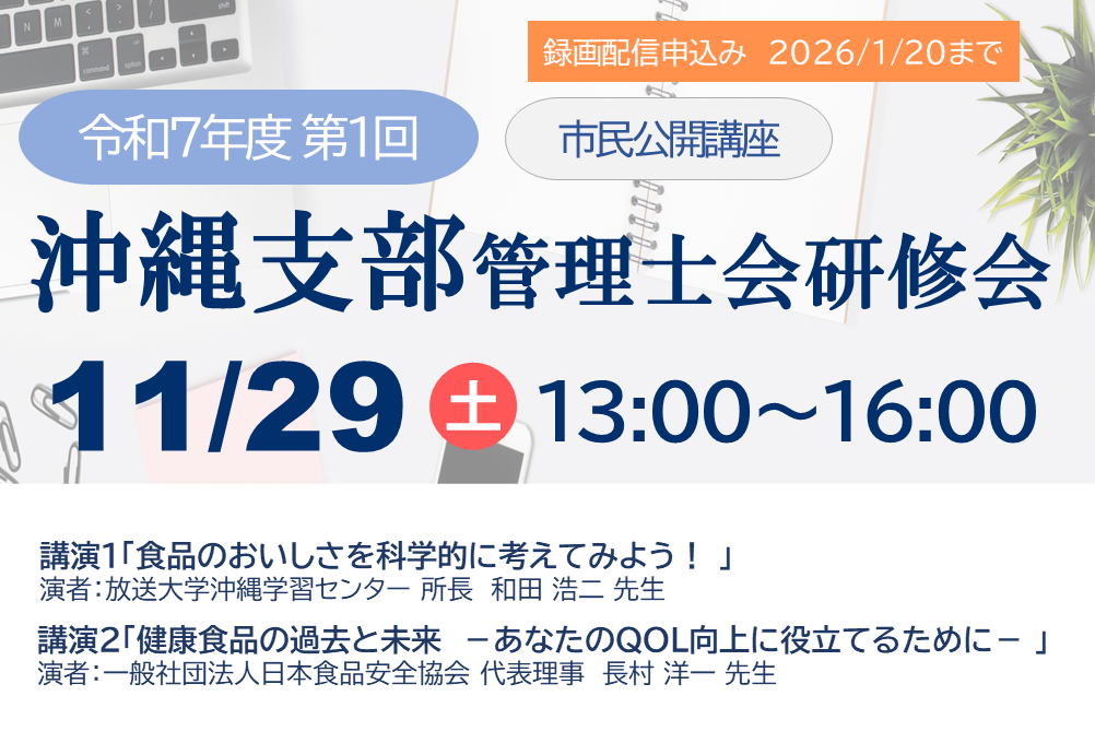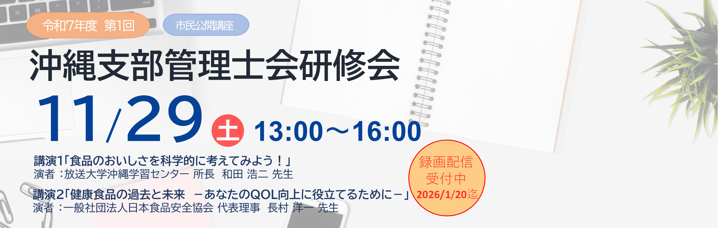 - ■管理士会研修会■11月29日 沖縄支部 健康食品管理士研修会(対面参加型)開催のお知らせ
